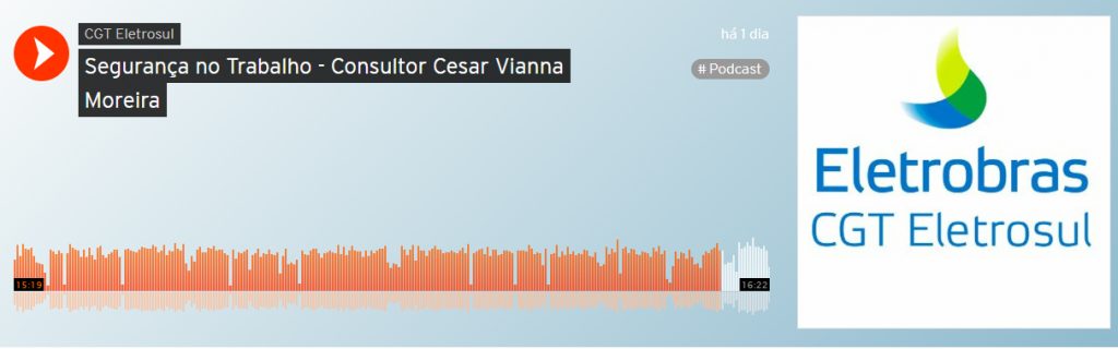 Em 27 de Julho, atendendo solicitação da empresa CGT Eletrosul empresa criada a partir da unificação das Empresas Eletrosul e CGTE, subsidiárias da Eletrobras, no sul do país, o engenheiro Cesar Vianna Moreira Diretor Técnico da CVMoreira Treinamento e Apoio Empresarial, participou de entrevista em Podcast sobre o tema “Dia Nacional da Prevenção de Acidentes – 27 de Julho”.